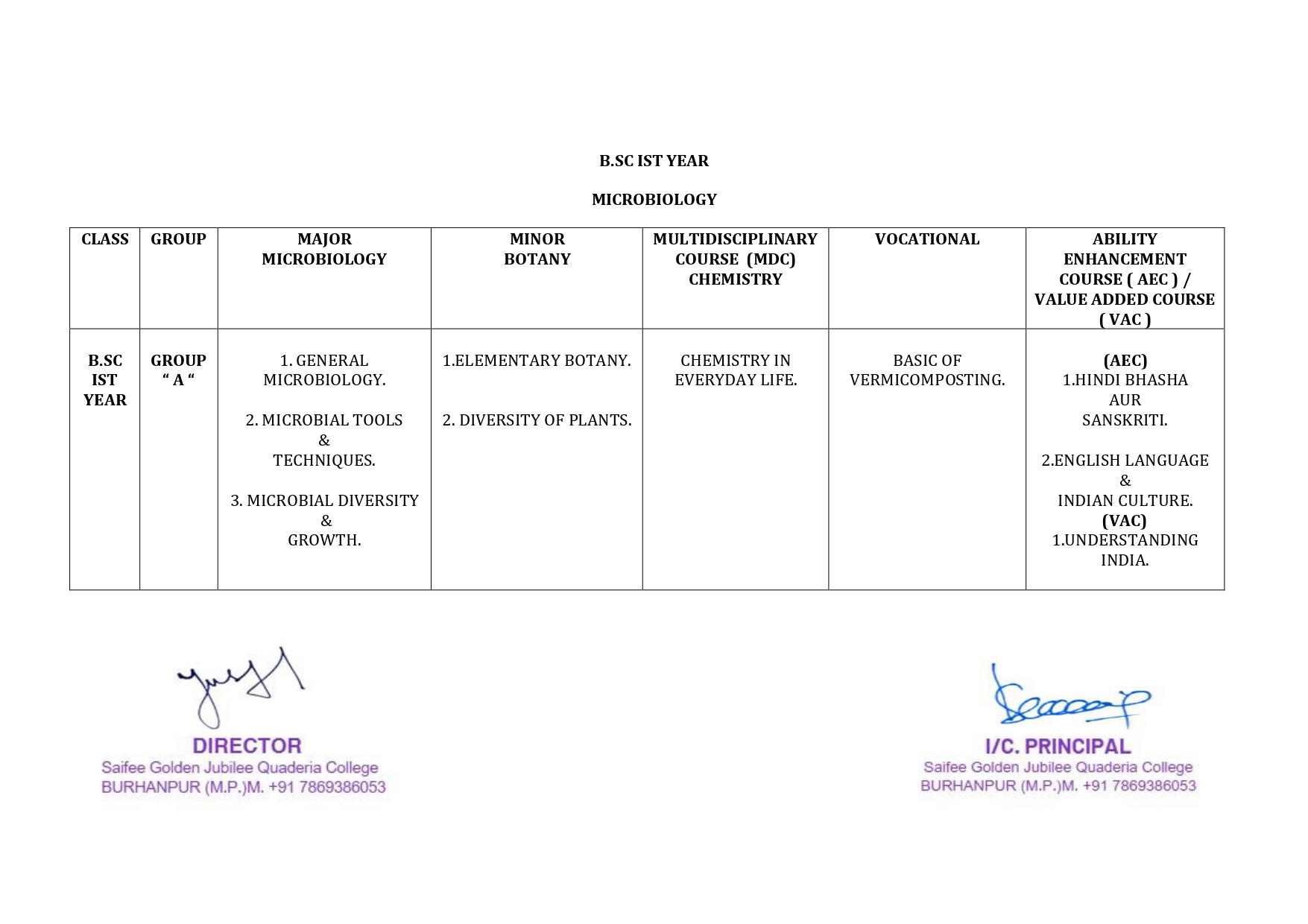 | Ist year | PAPER I-GENERAL MICROBIOLOGY AND CELL STRUCTURE | ANALYTICAL CHEMISTRY | BASIC BOTANY |