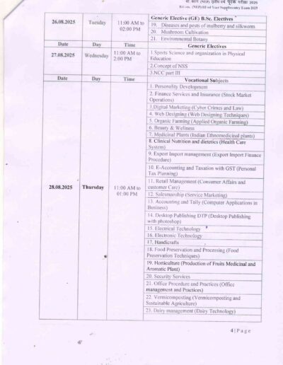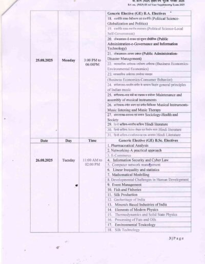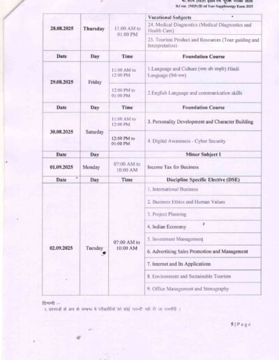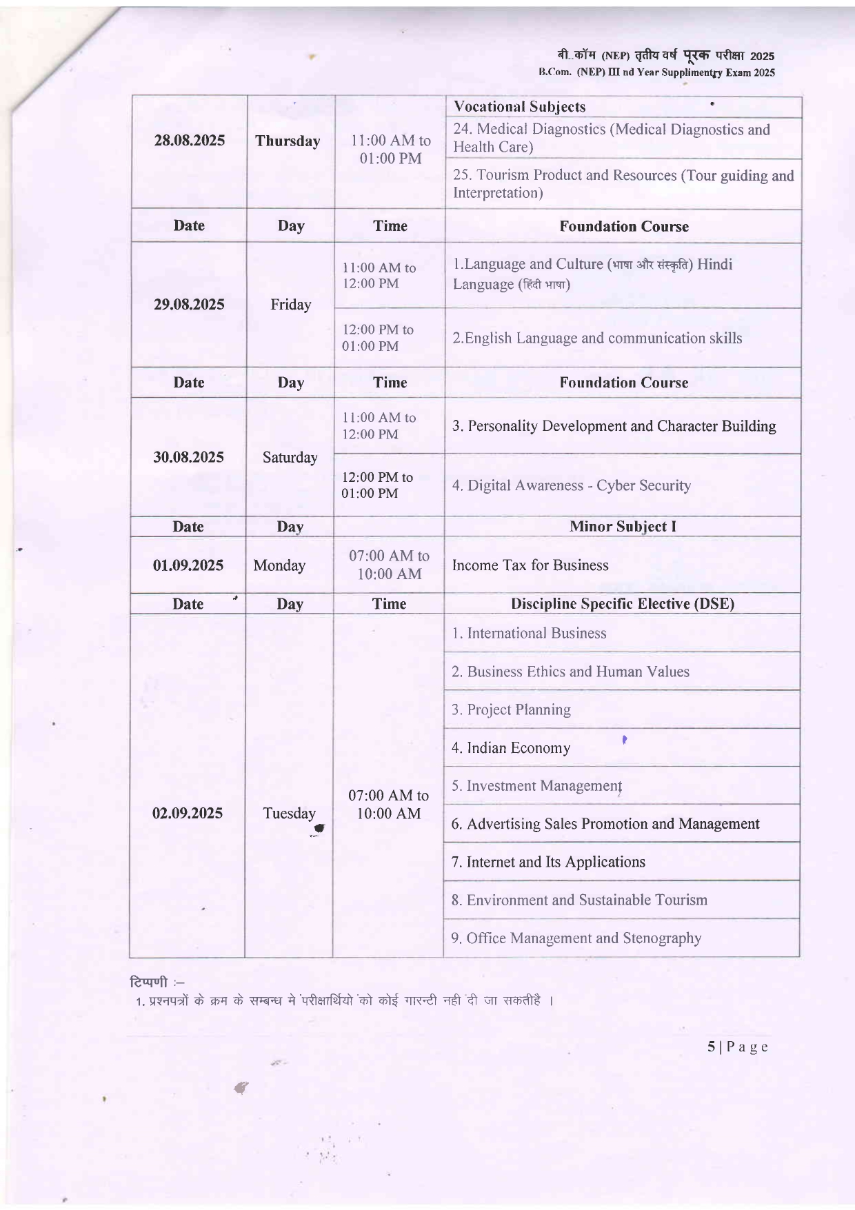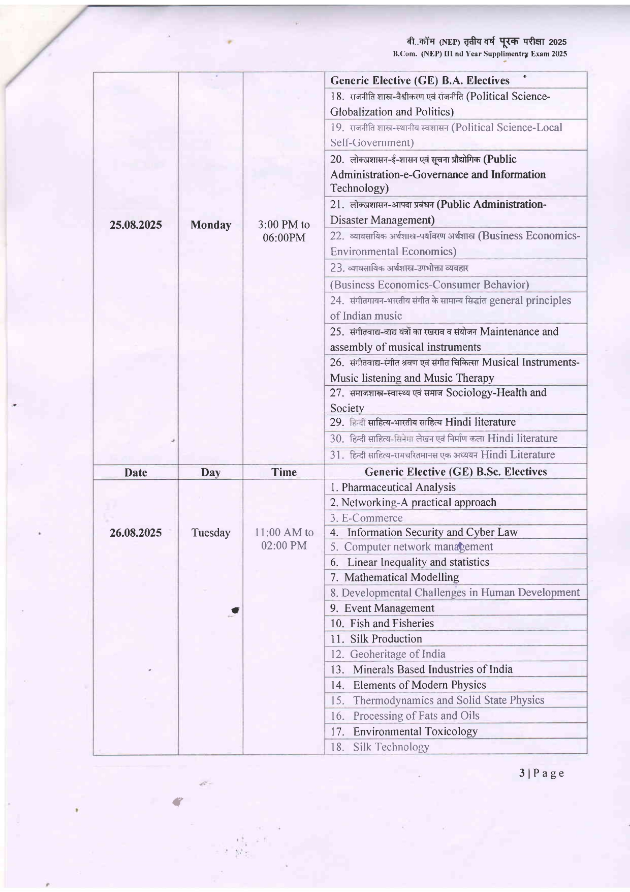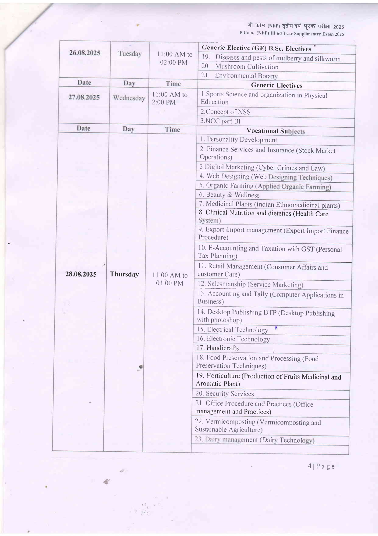 B.Com 3rd year Supplimentary Examination Time Table DAVV Indore