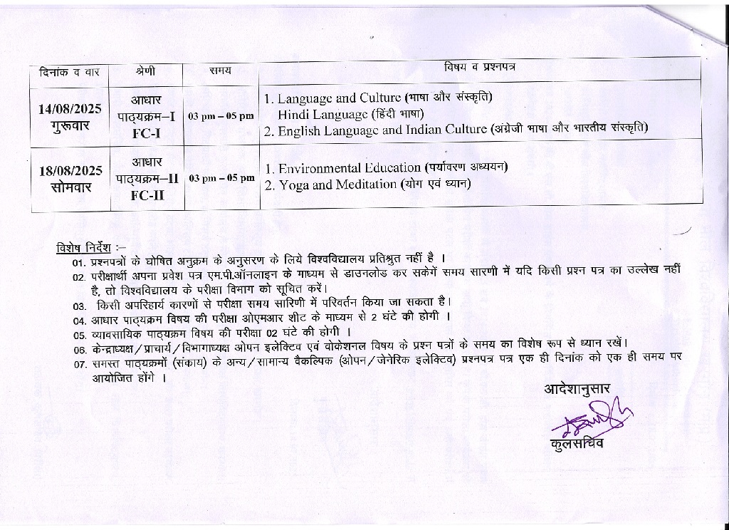 - Examination Notice : B.Sc 1 year Supplementary Exam Time Table Notification of KTB University Khargone MP