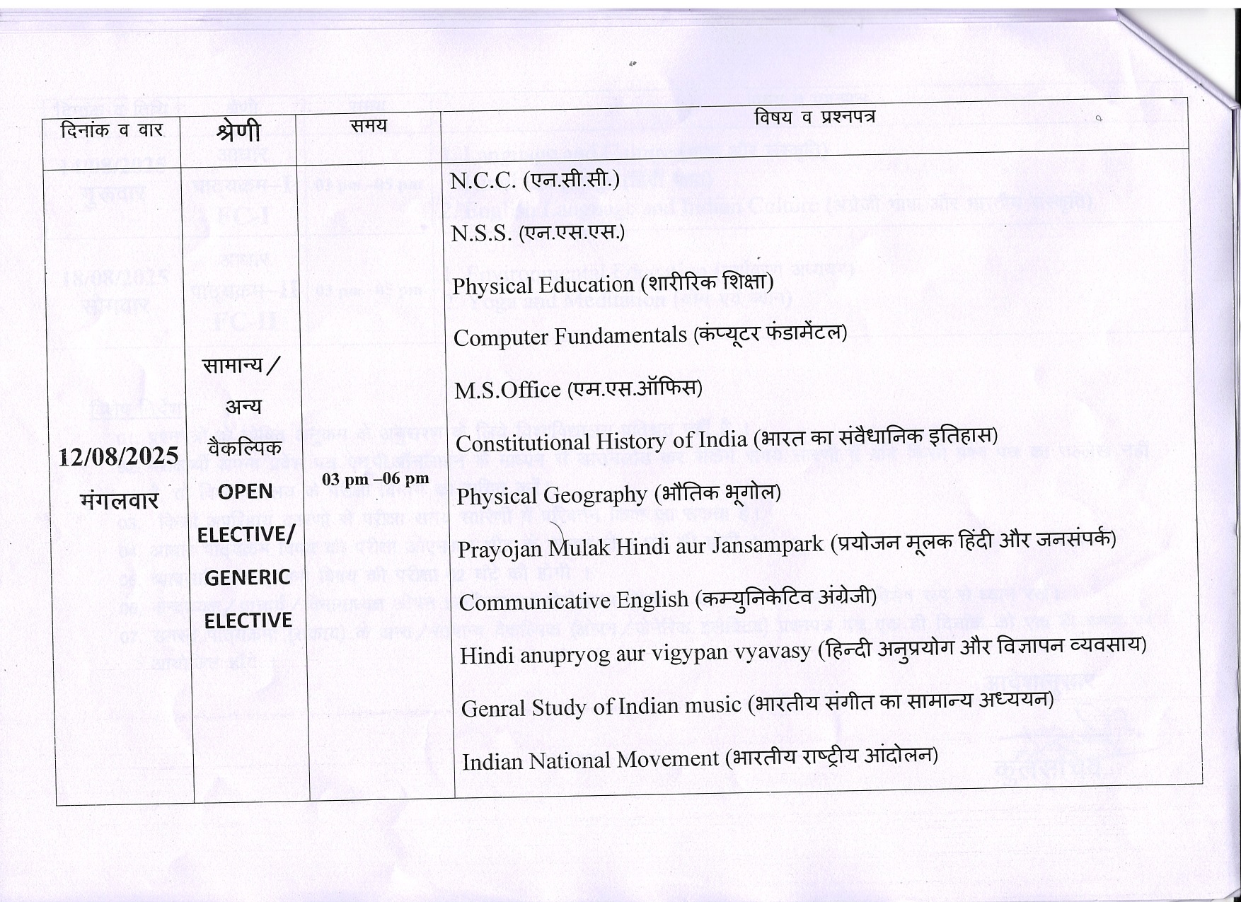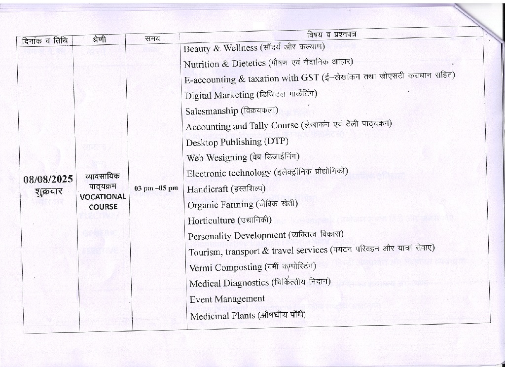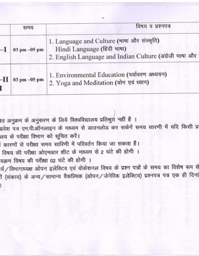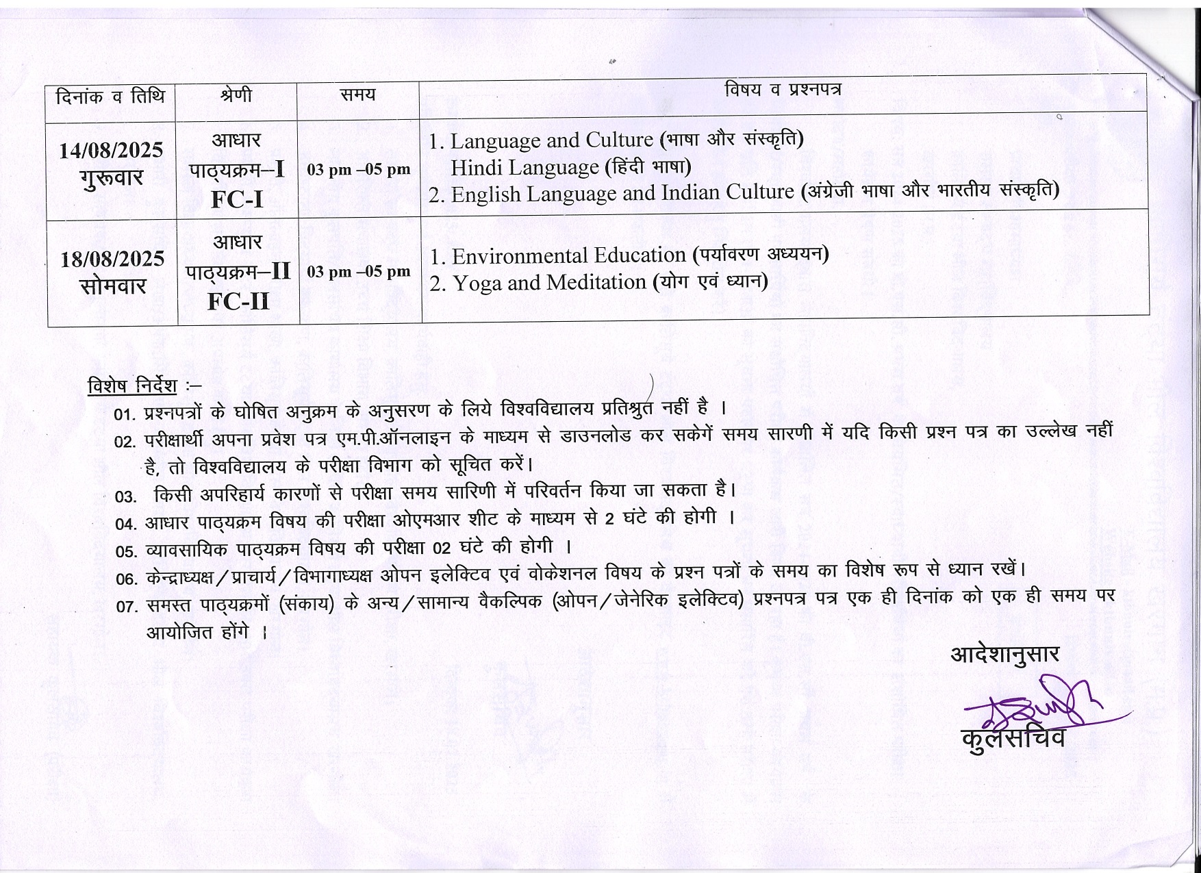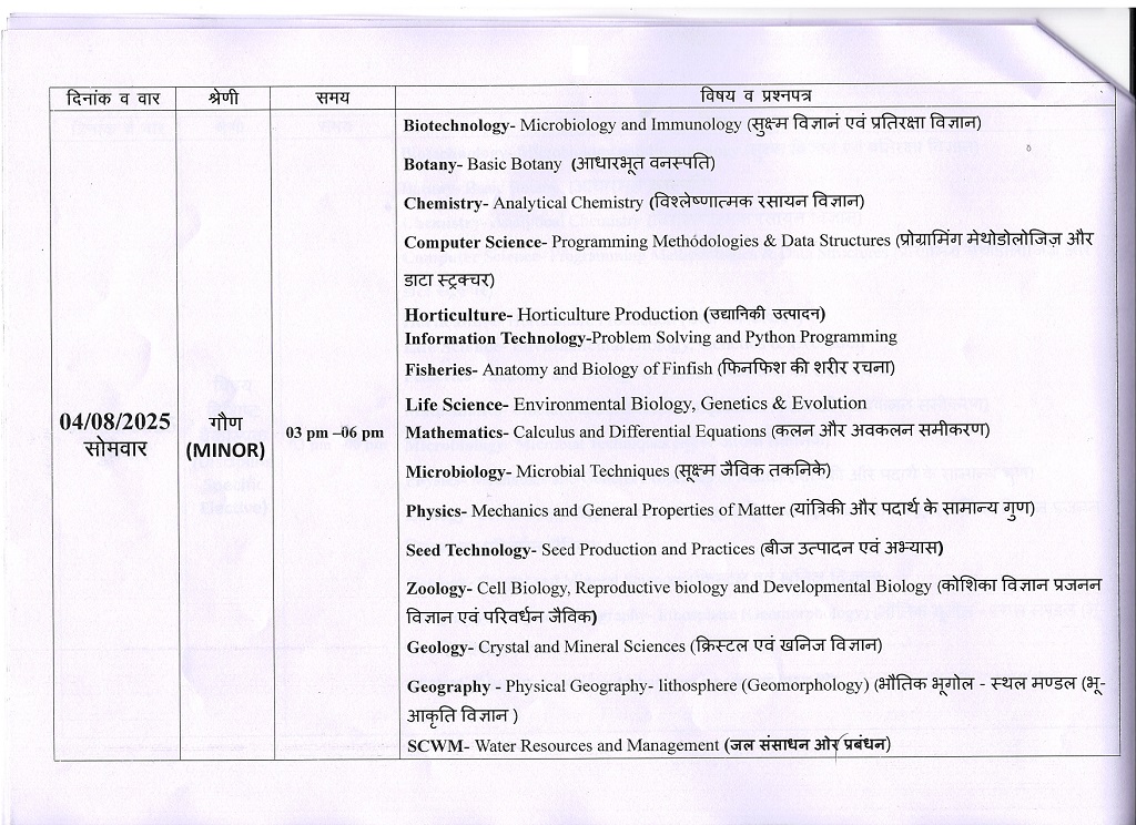 B.Sc 1st Year Revised Exam Time Table KTB University Khargone