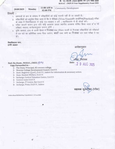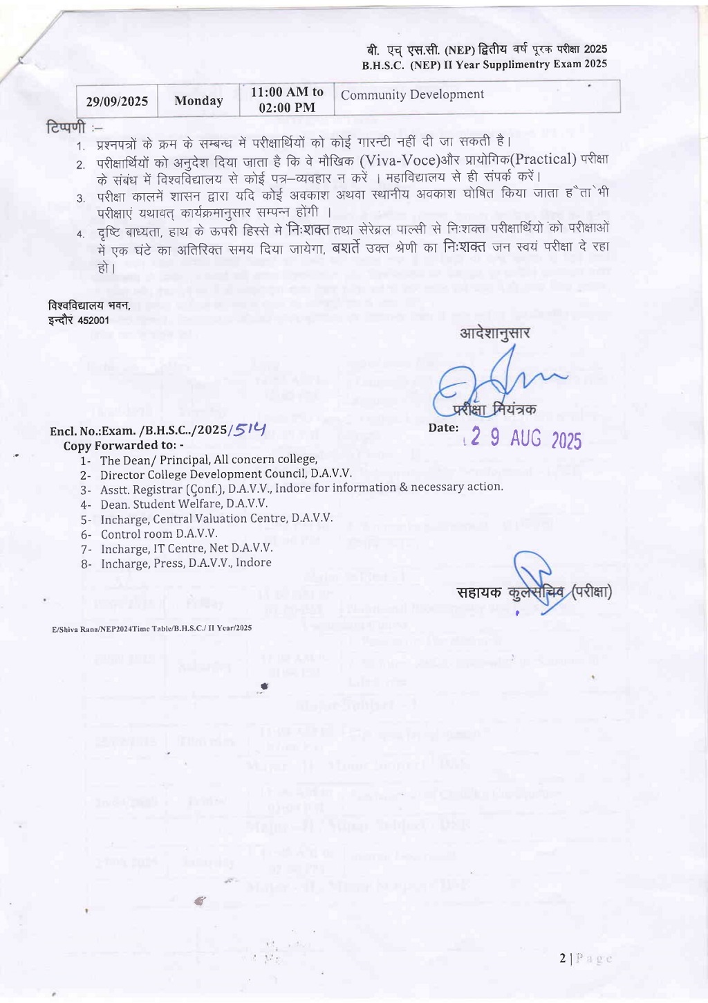 - Revised Examination Time Table : B.Com II Year Supplementary Exam Time Table Of DAVV Indore MP