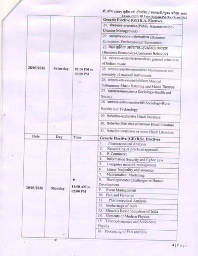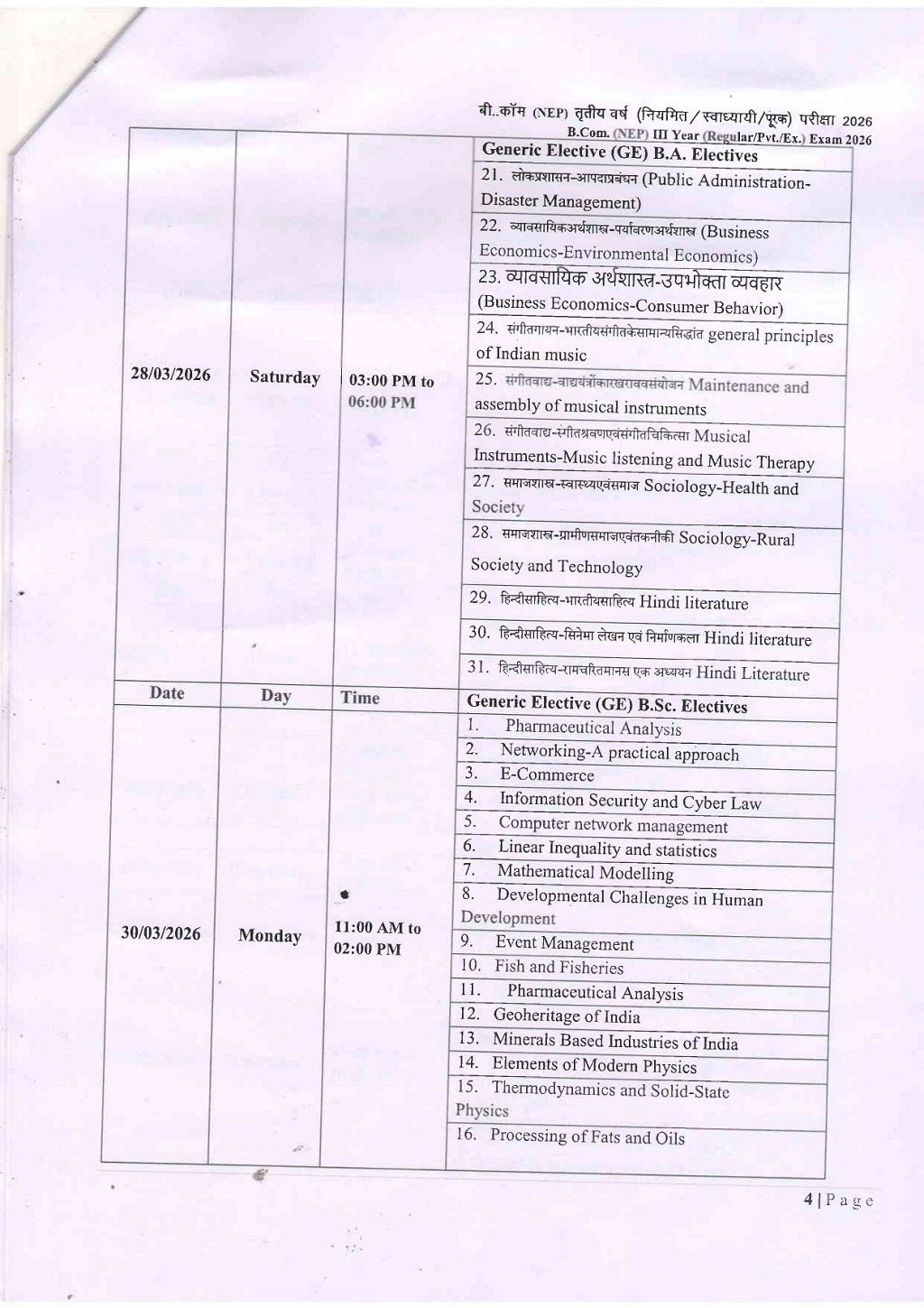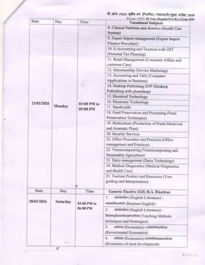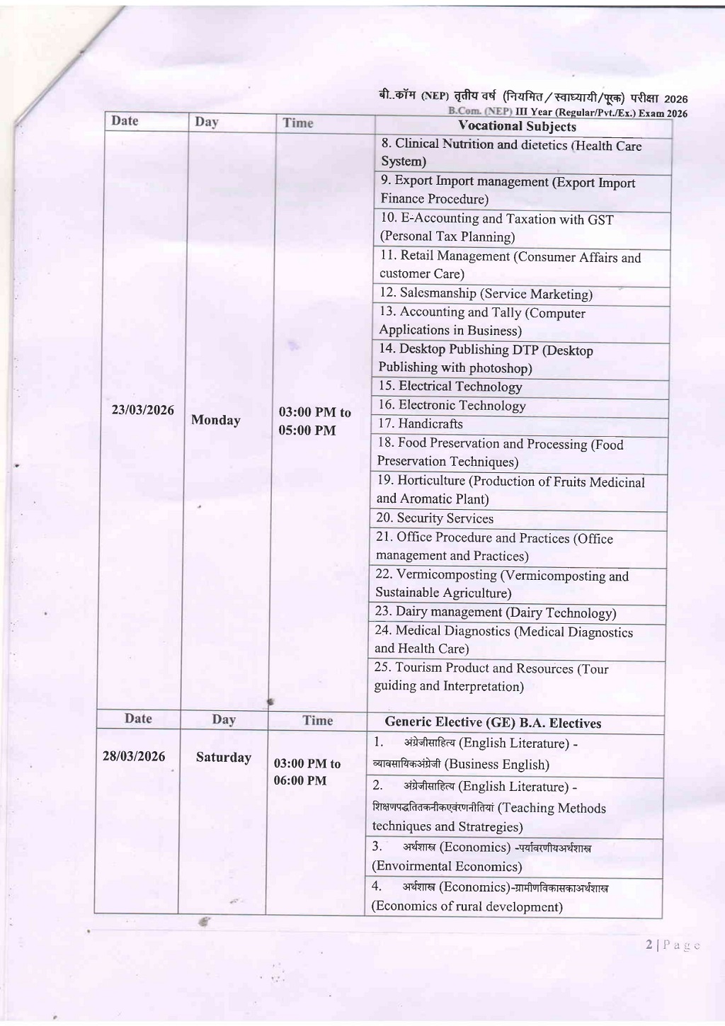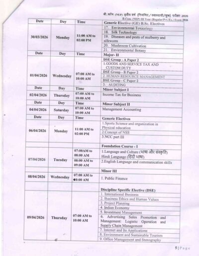 Examination Time Table Notification : Compile Time Table B.Com III Year DAVV Indore MP